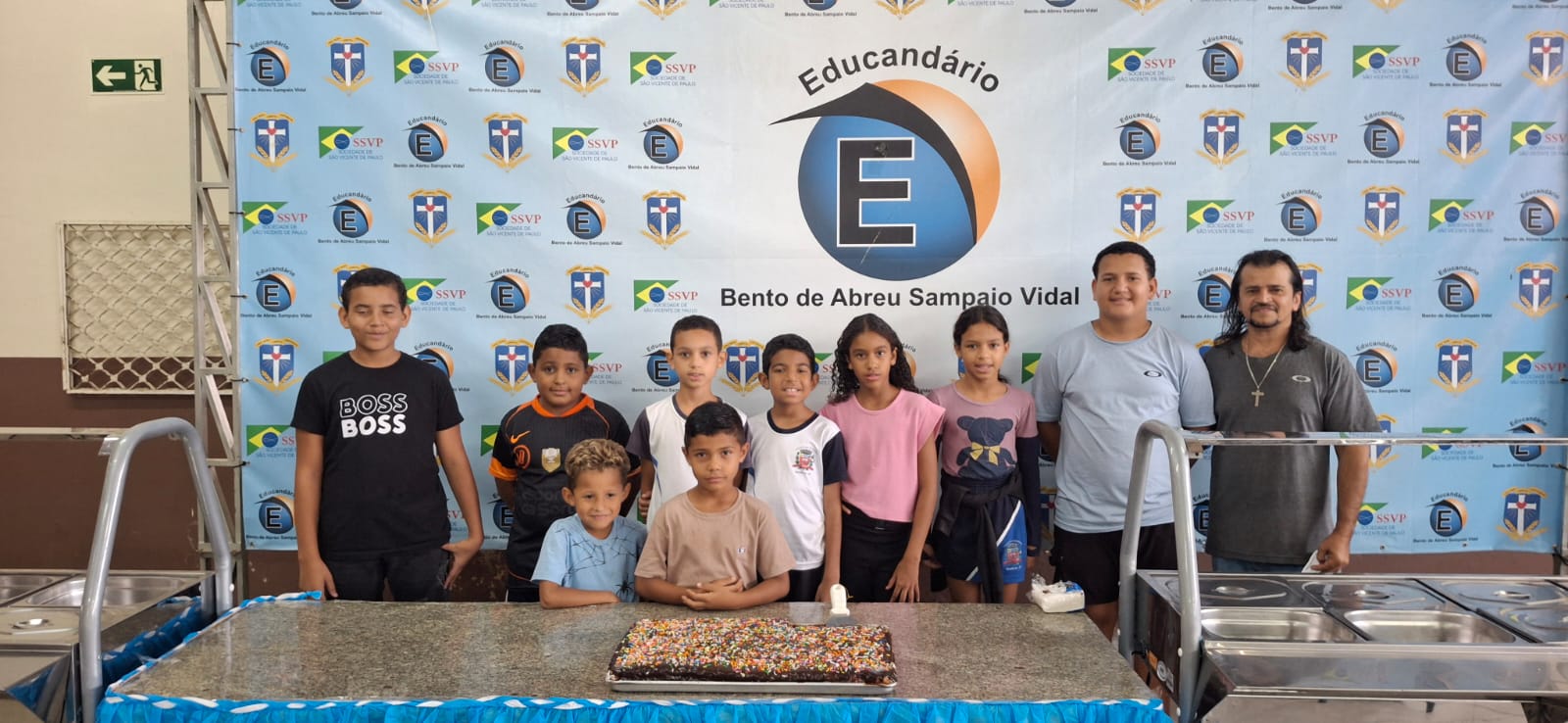 Destacamos ainda que, para a alegria de todos os educandos, tivemos na sexta-feira a comemoração dos aniversariantes dos meses de janeiro e fevereiro.