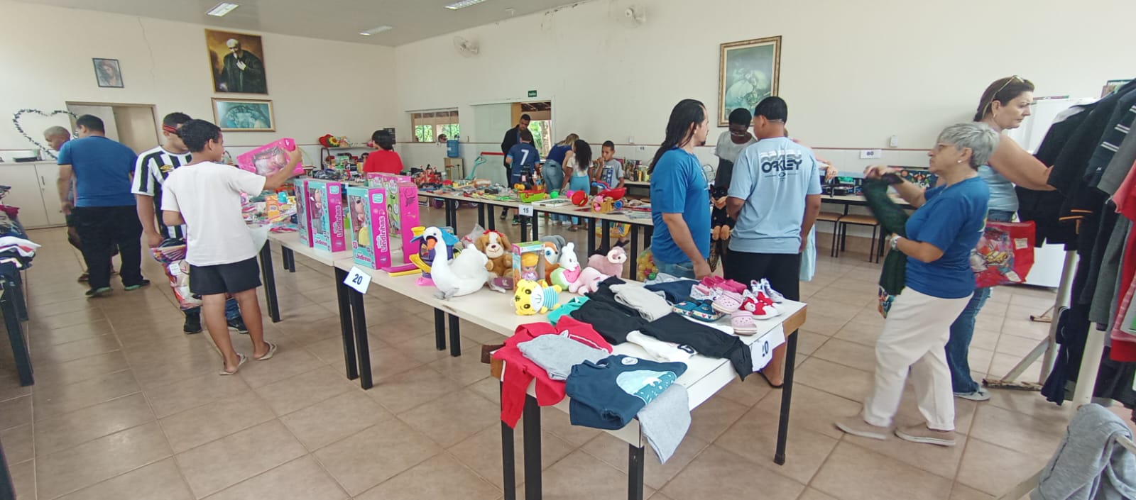 Mais uma vez, o bazar foi realizado no Seminário São Vicente, ocasião em que aproveitamos também para recordar as nossas raízes, nestes 68 anos de missão. E é gratificante ver o contentamento e a satisfação em cada momento — especialmente quando eles entram no bazar e se encantam com cada brinquedo, roupa, bicicleta, jogos, entre outras conquistas, adquiridas com o esforço deles próprios.