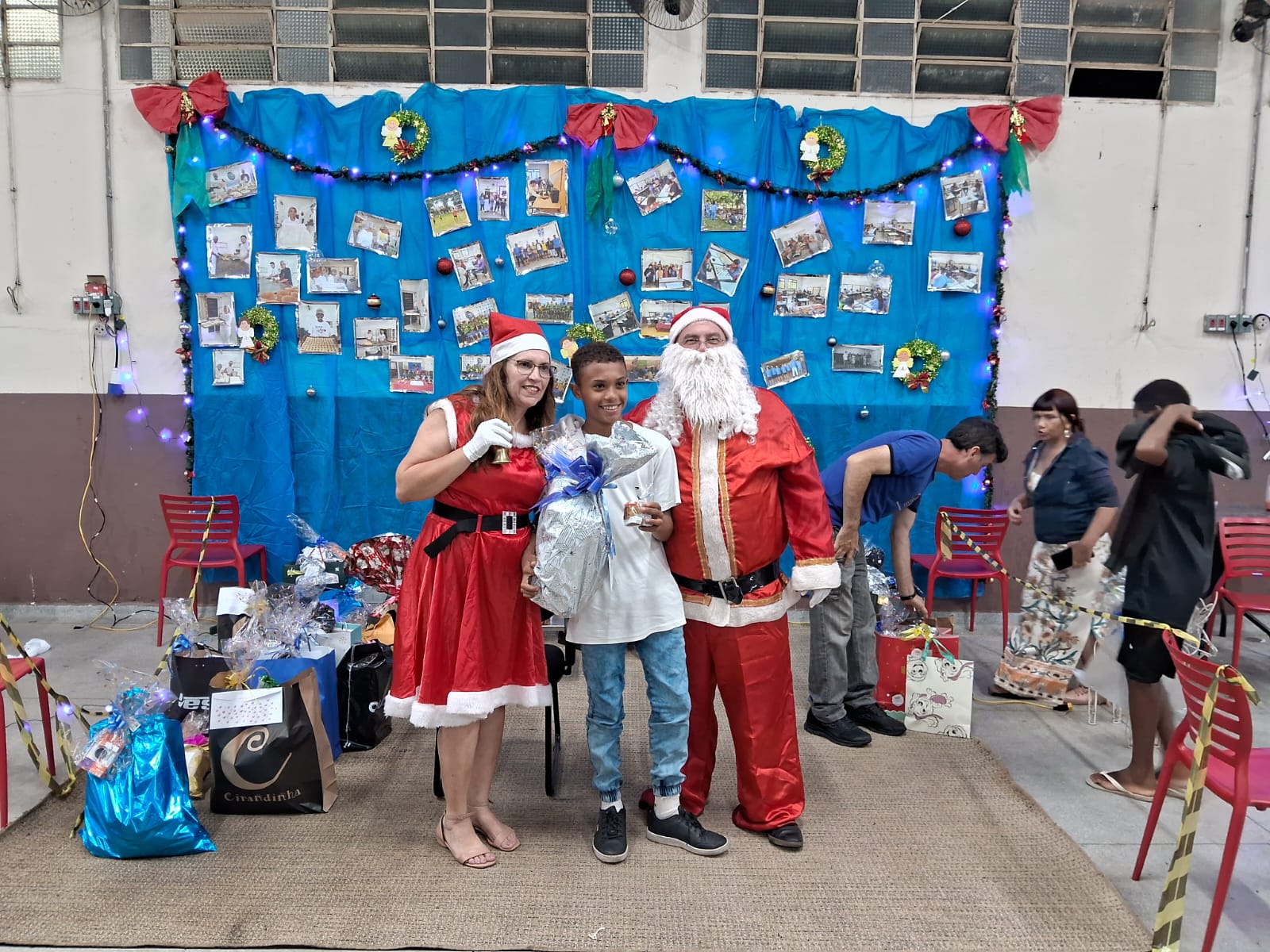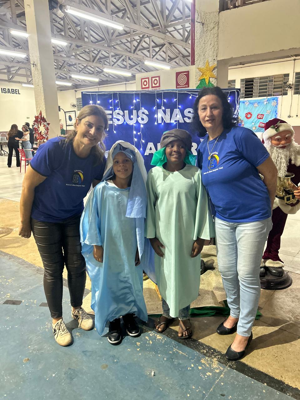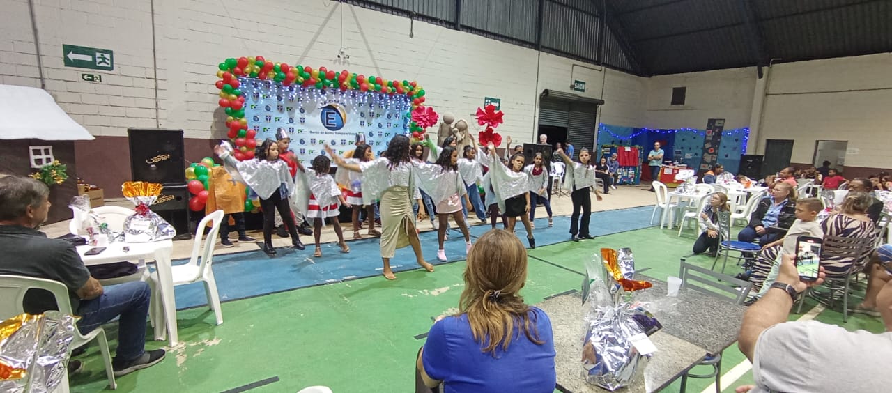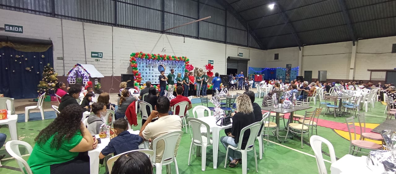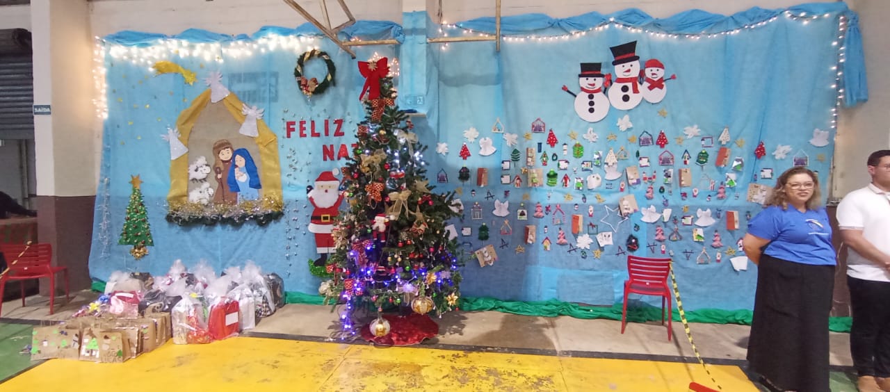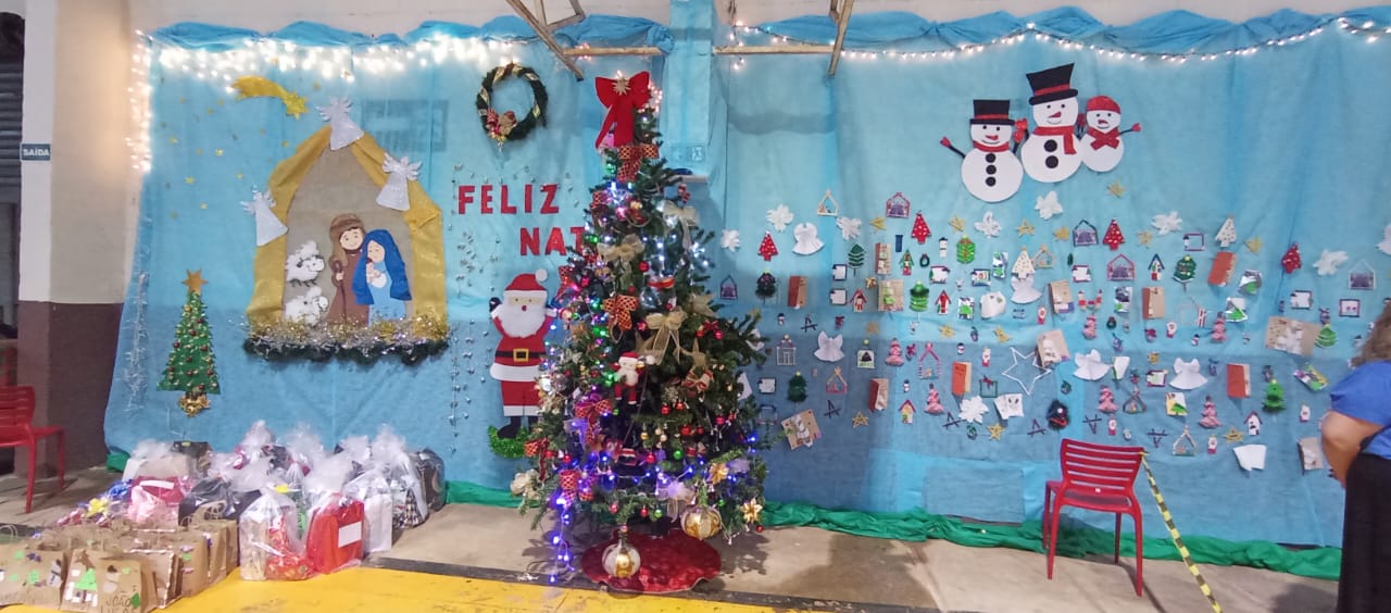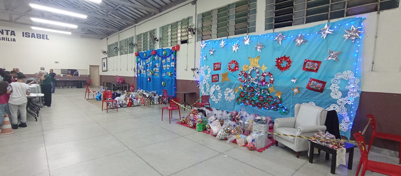 Também precisamos destacar a ajuda fundamental de nossos parceiros e amigos, que nos auxiliaram na cozinha, na organização do salão e na chegada do Papai Noel. Aliás, foram vários, e vieram especialmente para promover a entrega dos presentes de Natal a todos os alunos e também aos seus irmãos de até 12 anos. No mês de outubro, todos escreveram suas cartinhas, que mais uma vez foram acolhidas rapidamente por madrinhas e padrinhos de toda a comunidade de Marília, trazendo ainda mais alegria para essa festa tão abençoada.